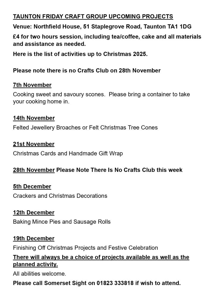 CALL US ON 01823 333818 TO FIND OUT ABOUT OUR EVENTS AND ACTIVITIES, SOCIAL GROUPS AND RESOURCES.